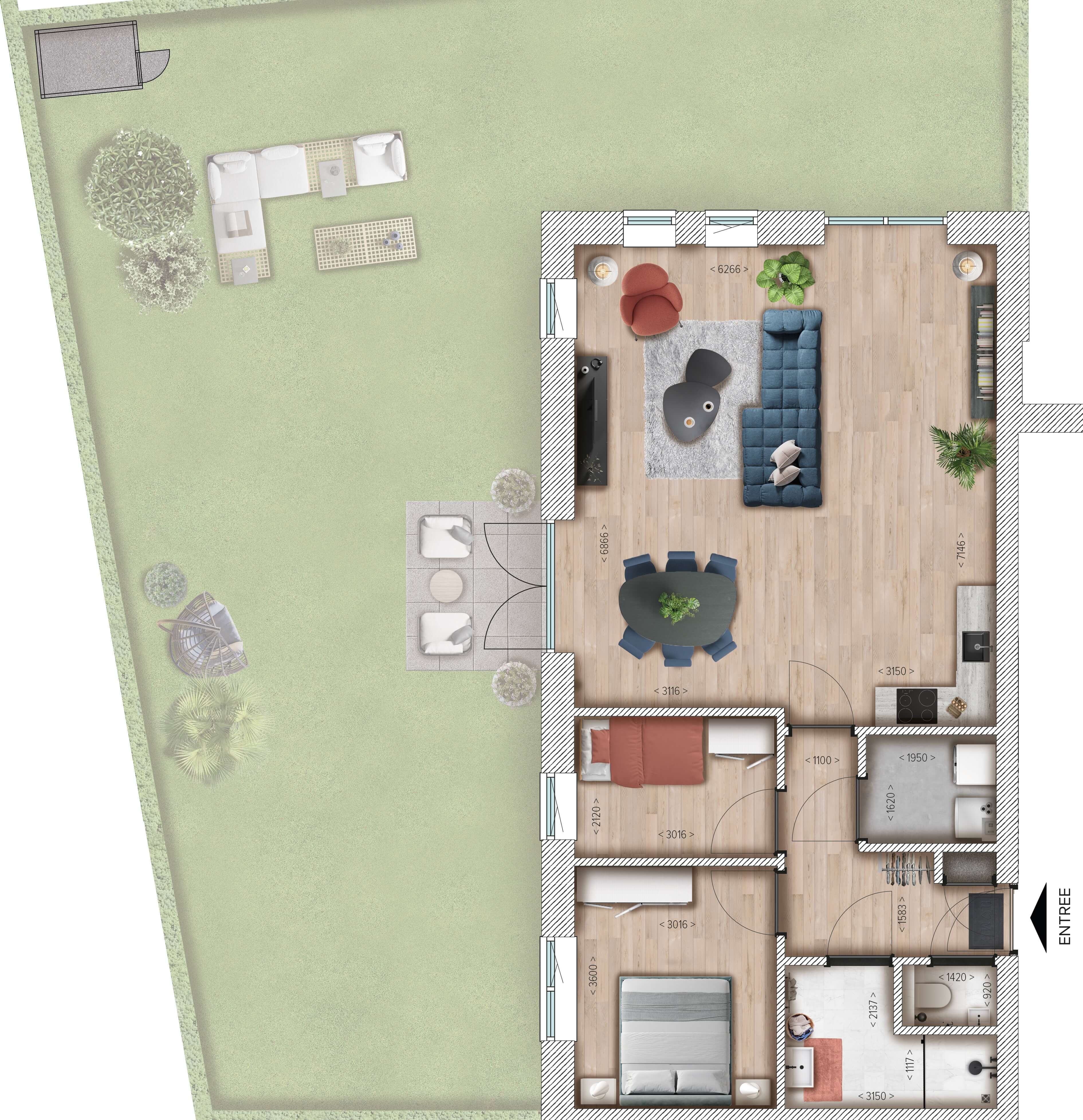 Alles is gelijkvloers, overzichtelijk en gericht op comfortabel wonen.